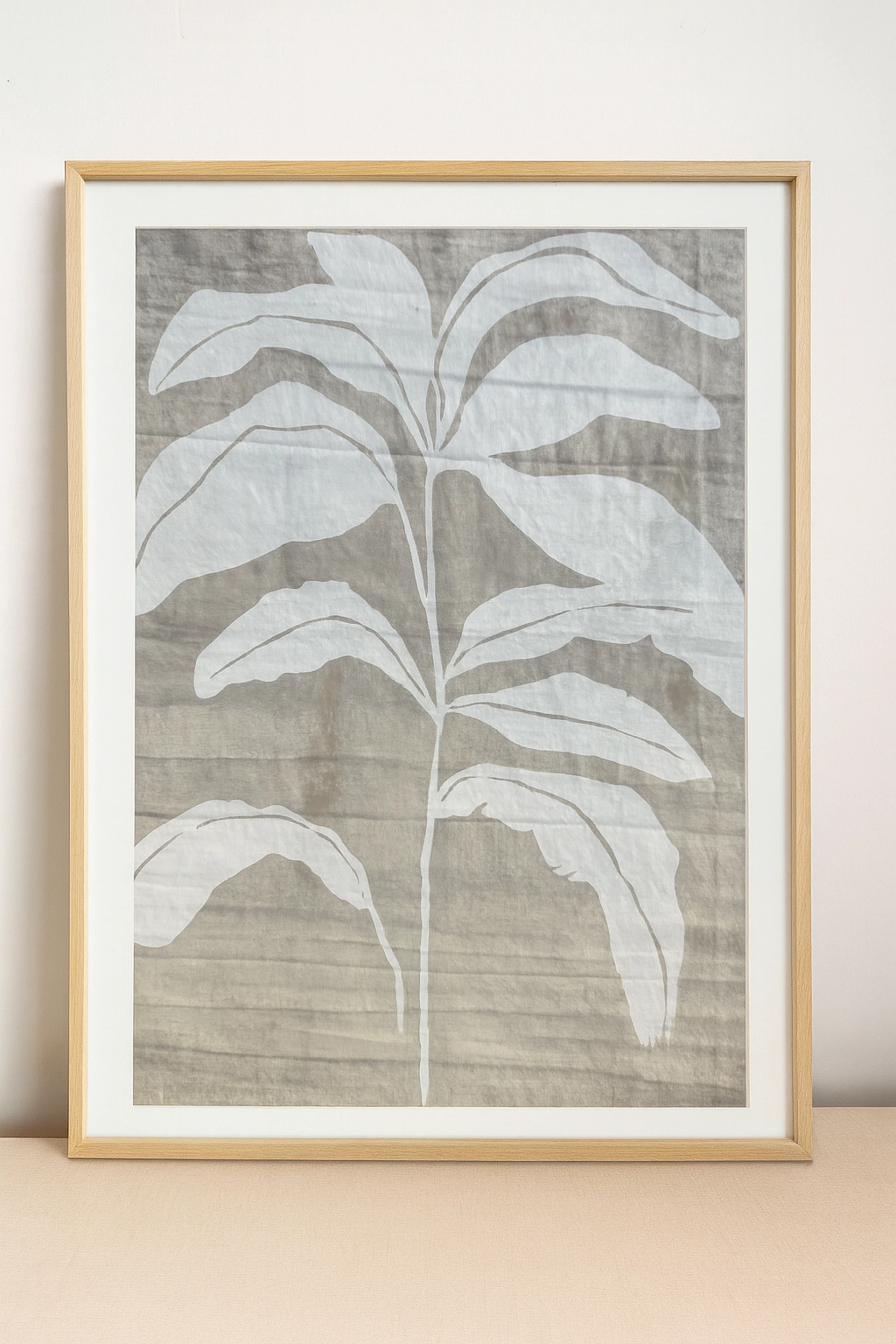 Tinta sobre tela pintada a mano en color gris lista para enmarcar con vidrio