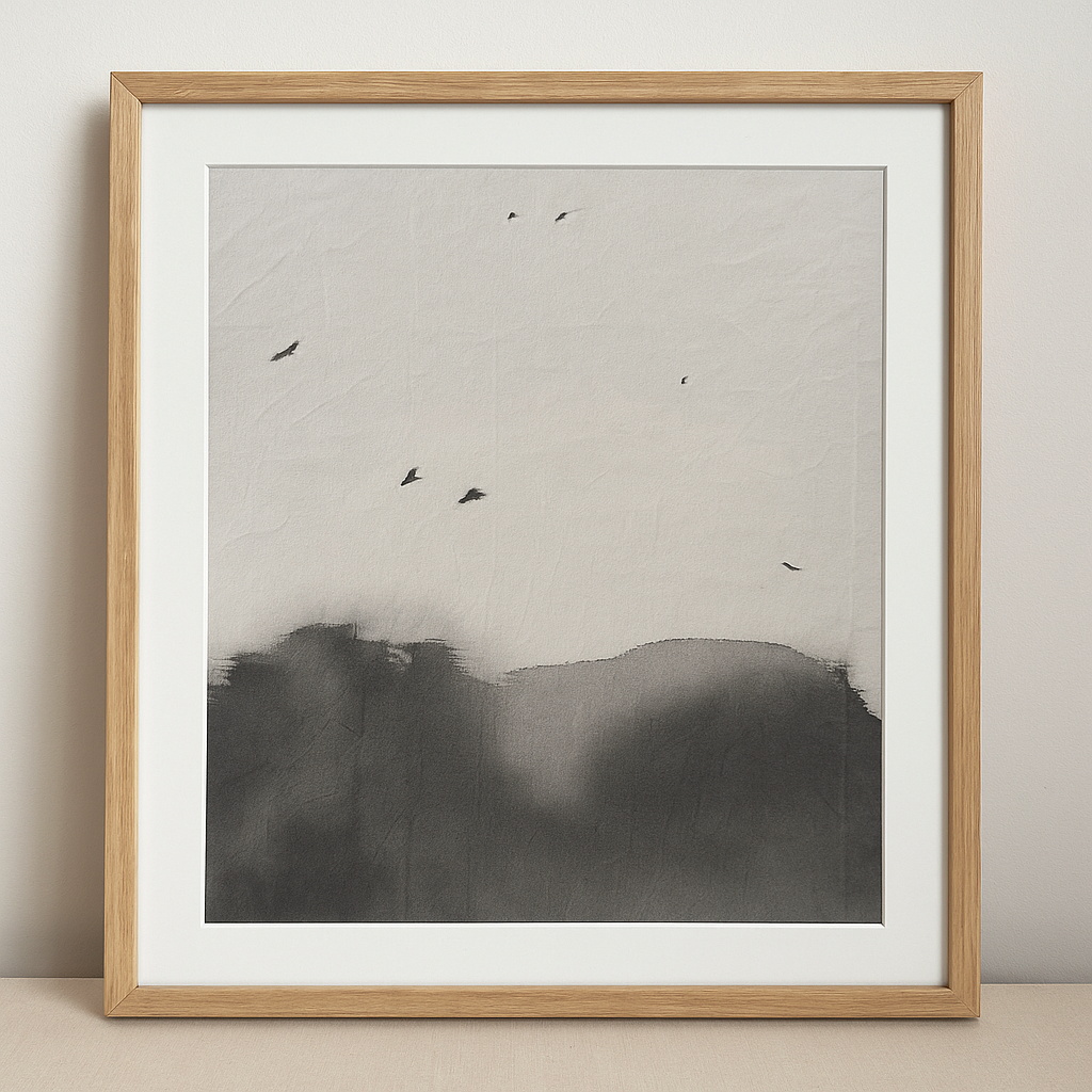 Tinta color negro sobre tela natural lista para enmarcar con vidrio