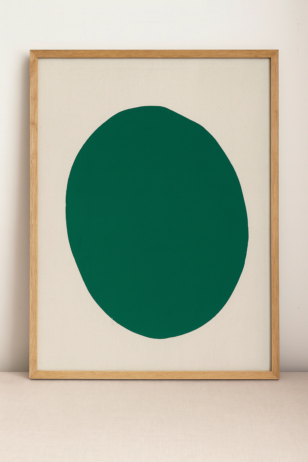 Tinta color verde plaza sobre tela bastidor natural enmarcada sin vidrio